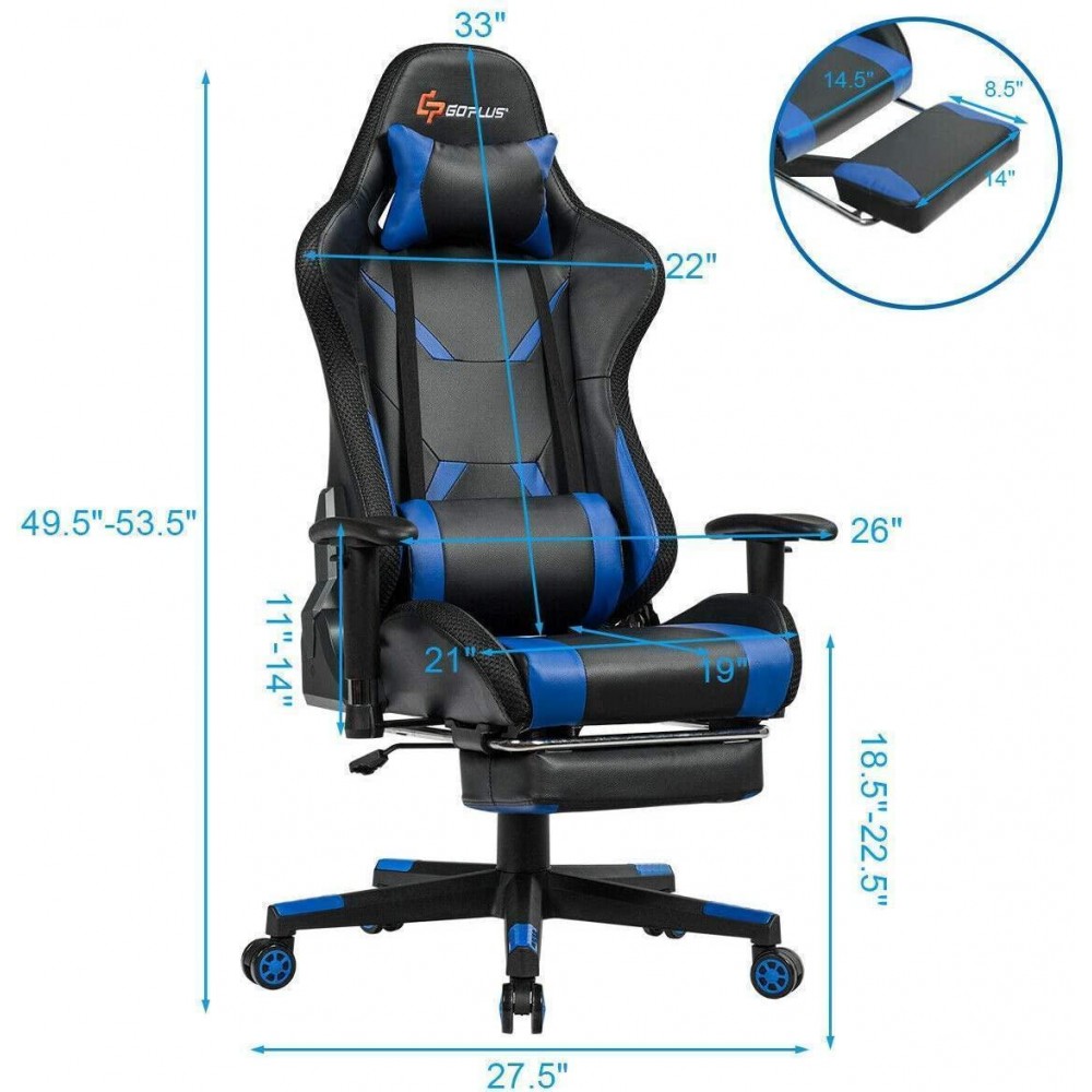 - 【Adjustable Height & Easy to Move】The seat height of the racing chair can be adjusted between 18.5′′ to 22.5′′ to match your gaming desk’s height. And the 360 degree swivel design allows you to easily switch directions and chat with friends. 5 universal wheels help you move freely in your room.