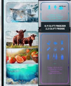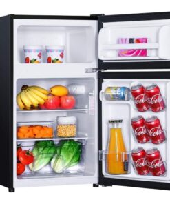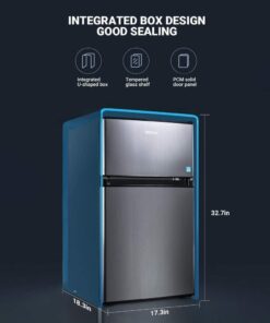 - SMALL SIZE WITH LARGE CAPACITY: The fridge is small and compact(17.3 x18.3 x32.7 inches), which is suitable for different environments — offices, apartments, kitchen, garages, college dorm, protected outdoor spaces. 3.1 cubic feet capacity, with 0.9 cu.ft freezer can be used storage your ice cream or frozen food and 2.2 cu.ft fresh-keeping fridge keep drinks, fruits, vegetables and other food cool