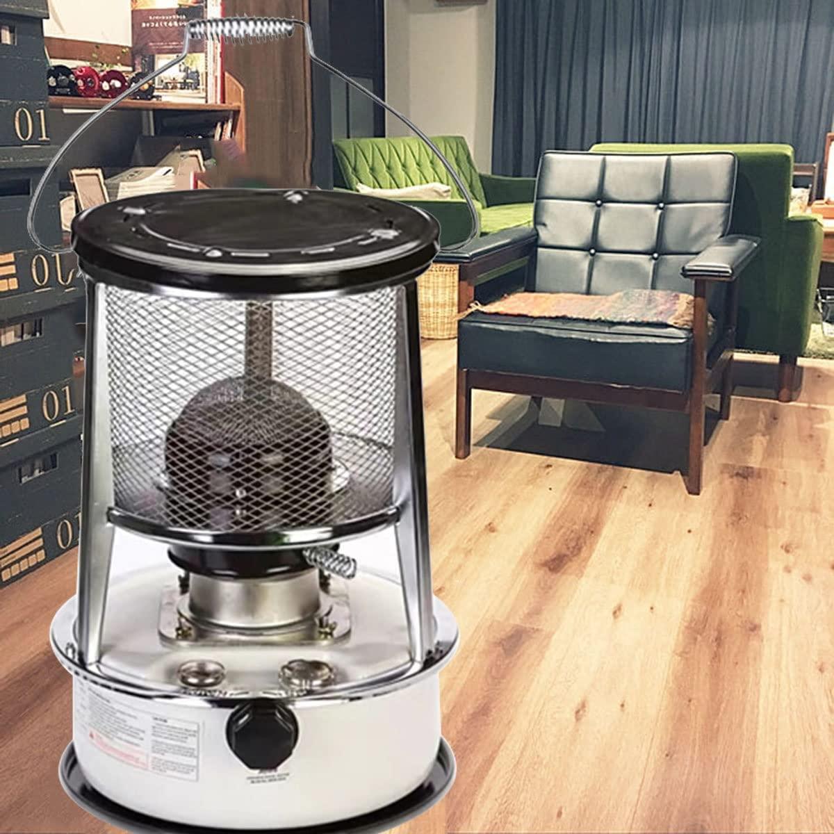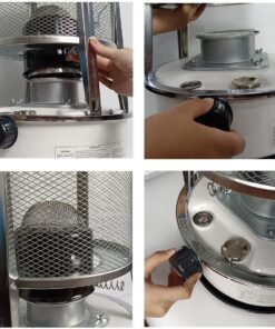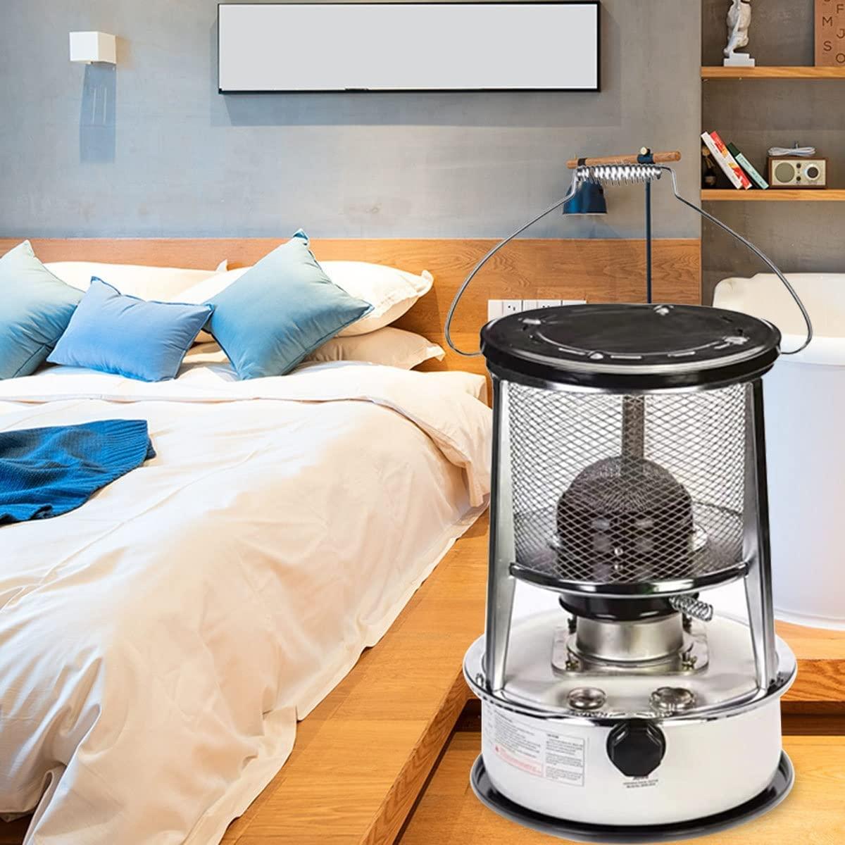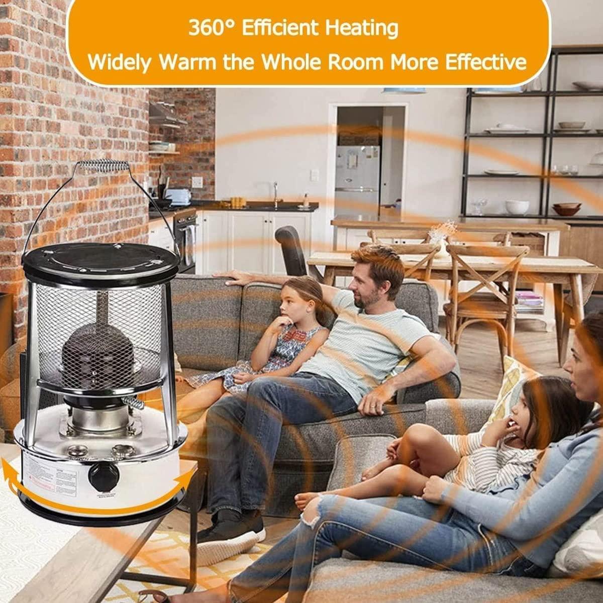 - ◆ flame is protected by a metal cage to ensure safety. Kerosene heaters feature an anti-tipping device and automatic safety shut-off, which means external heaters are safe to use. The heater is made of solid stainless steel for stability and durability. The material is rust-resistant and strong.