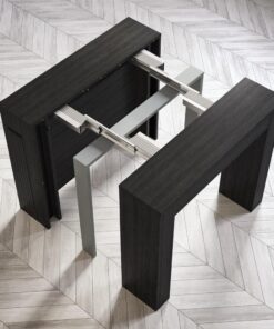 - DETAILS: Aluminum telescopic mechanism, with central iron legs, that gives stability to the structure when extended. When not in use the 5 extension leaves can be easily stored in the leg (with special slot).