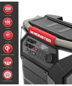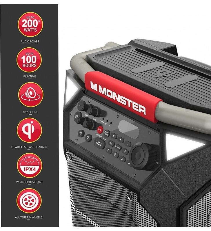 Monster Rockin’ Roller 270 Portable Indoor/Outdoor Wireless Speaker, 200 Watts, Up to 100 Hours Playtime, IPX4 Water Resistant, Qi Charger, Connect to Another TWS Speaker