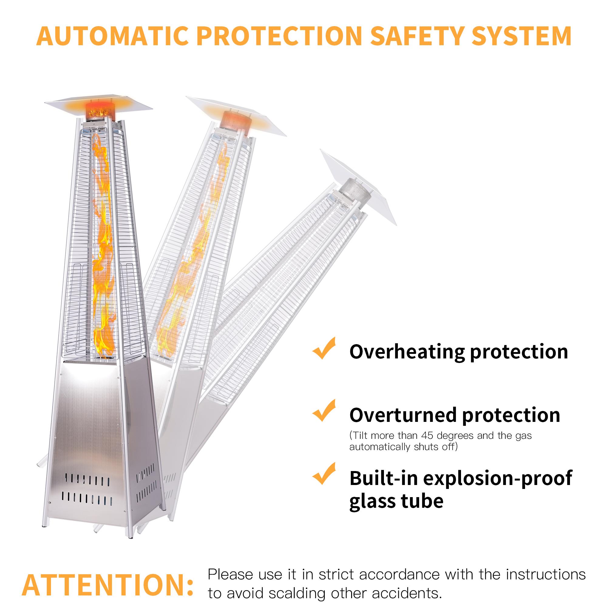 Outdoor Patio Pyramid Propane Space ,Portable ,W/Wheels,Stainless Steel Color