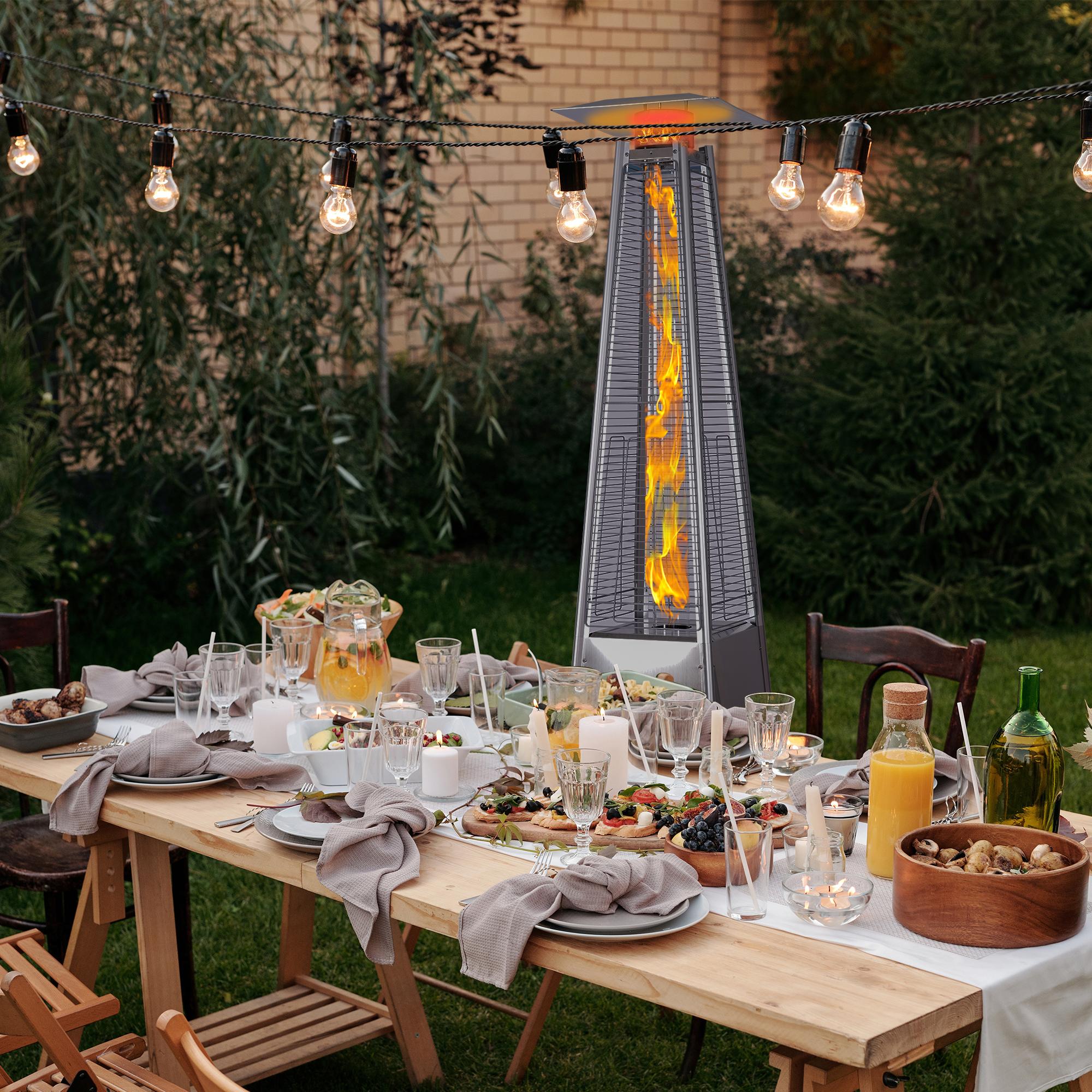 This Patio Pyramid Propane Space has 46,000 BTU heat output in a circle. It only takes a few minutes to warm up quickly, which is a great heating solution for your outdoor socializing. With this , you can still enjoy the warm courtyard life when winter comes.