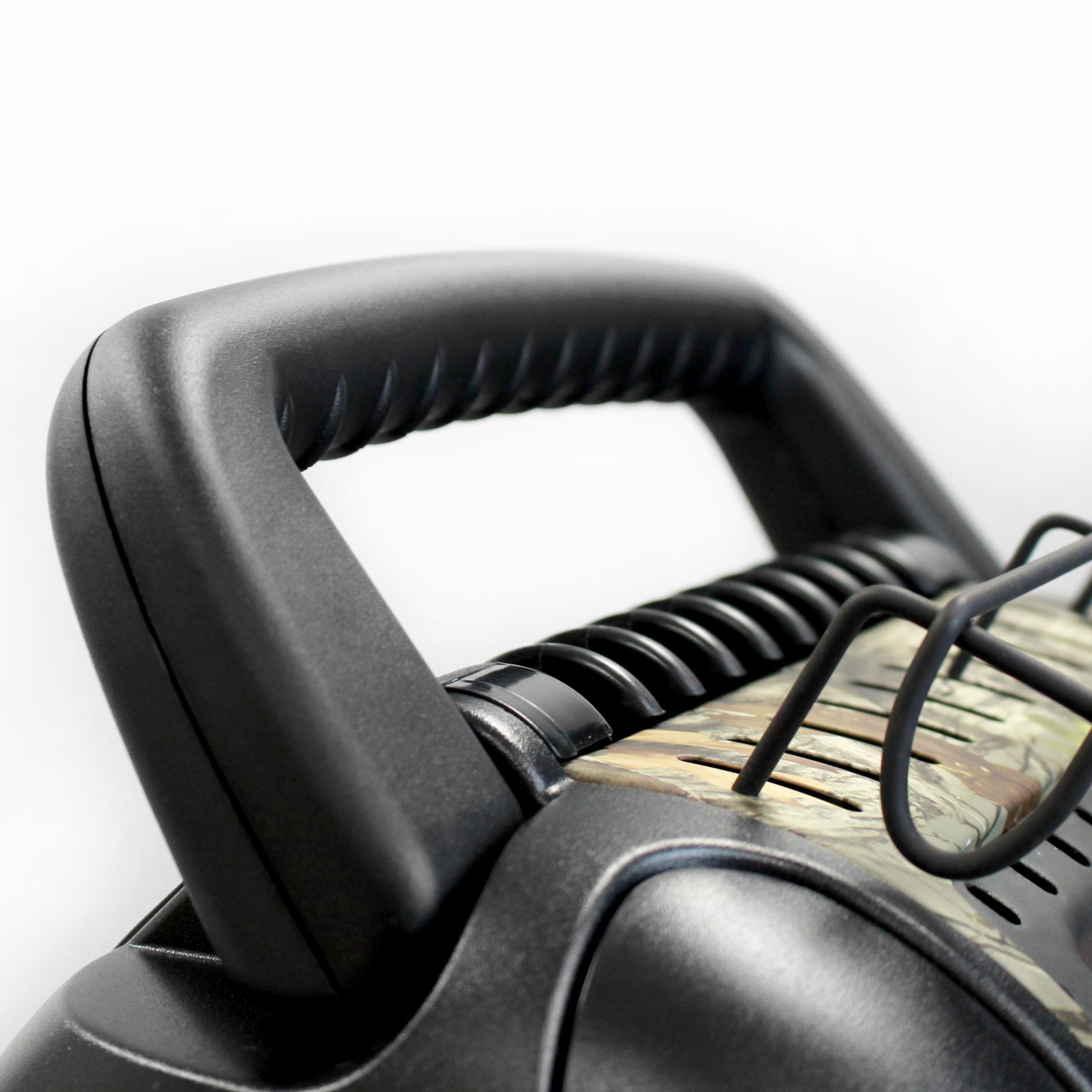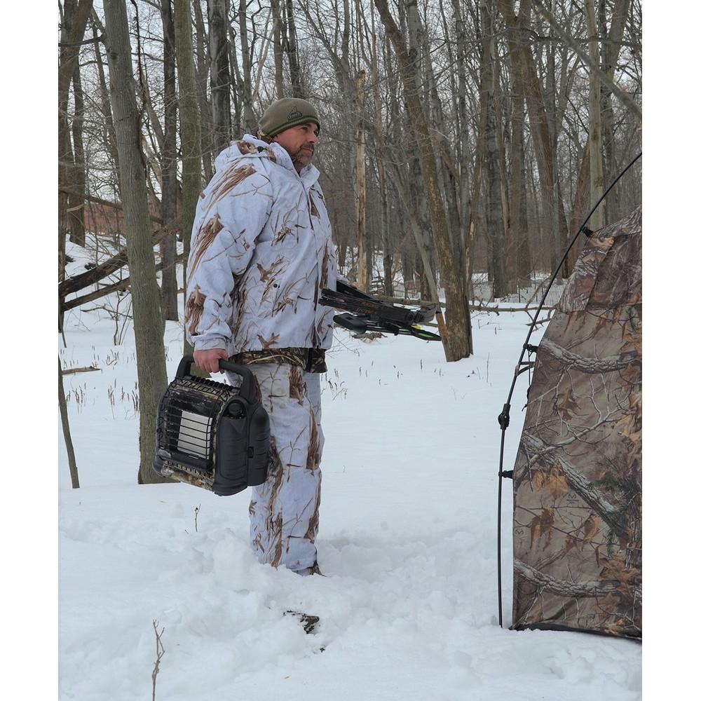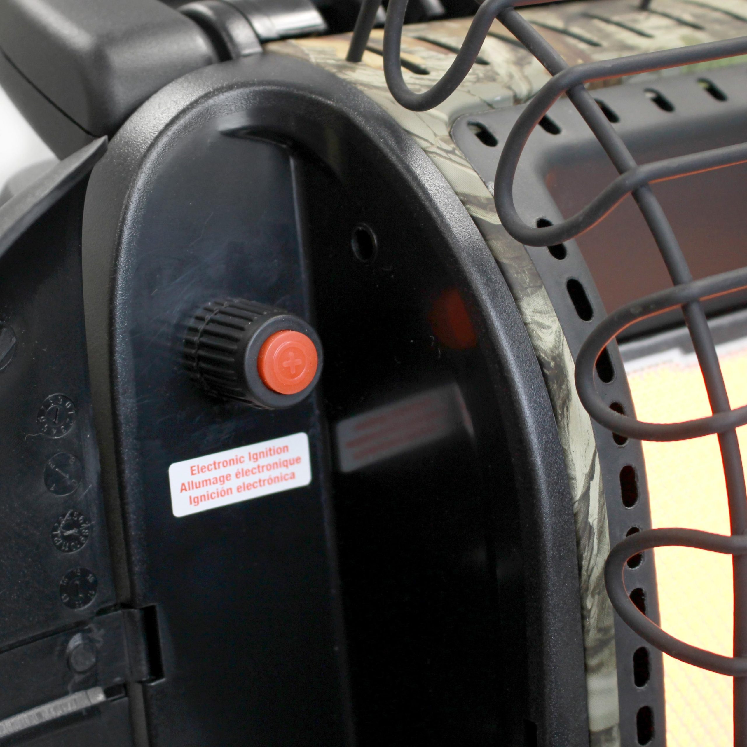 North America’s most popular portable propane heater! This patented radiant 6,000-12,000 BTU liquid propane heater connects directly to a 1 lb cylinder and is the perfect solution for heating enclosed spaces like pop-up blinds, tents or cabins up to 300 sq ft. camouflage face plating and two spare storage compartments for an extra one pound propane tank, gloves, or other emergency tools make this the perfect outdoor adventure heater. A swivel regulator gives you the ability to adapt usage from disposable cylinders to a remote gas supply with the purchase of a single hose and filter. To light the unit, push down the pilot knob and depress the silent electronic pulse ignition button. The unit will light with much less noise than a traditional Piezo spark igniter. With the oxygen depletion sensor (ODS) and accidental tip over safety shut-off, you can be sure that you will enjoy years of comfortable indoor safe heat.