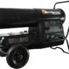 - 35,000 BTU plus an 800 sq. ft. heating capacity Easy piezo push-button ignition High temperature limit switch/flame safety Heater shuts off with loss of flame or power supply Compact plus lightweight with attached carrying handle Rugged, durable steel construction