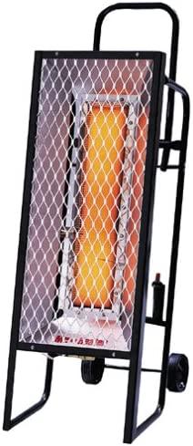 - 35,000-BTU portable propane radiant heater with folding handle and wheels