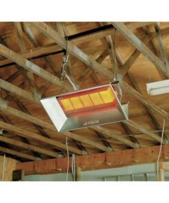 The Mr. Heater 40,000 BTU Radiant Propane Garage/Workshop heater directs line of site radiant heat to floor-level objects, which in turn, heat surrounding air to the desired temperature. Personnel and objects at floor level enjoy instant, cost-saving comfort. Ideal for use in garages or workshops to keep cars, tools, and yourself warm and comfortable. 99.9% efficient, it transfers almost all of the fuel it burns directly into clean safe radiant heat. Has a power pile thermocouple ignition with manually lit pilot, so no electricity is required. Also has a safety shut-off on the pilot and burner, and ships with a thermostat, hanging brackets, and chains. Consult the user manual for installation instructions and for clearance to combustible guidance.