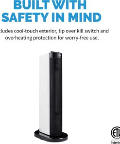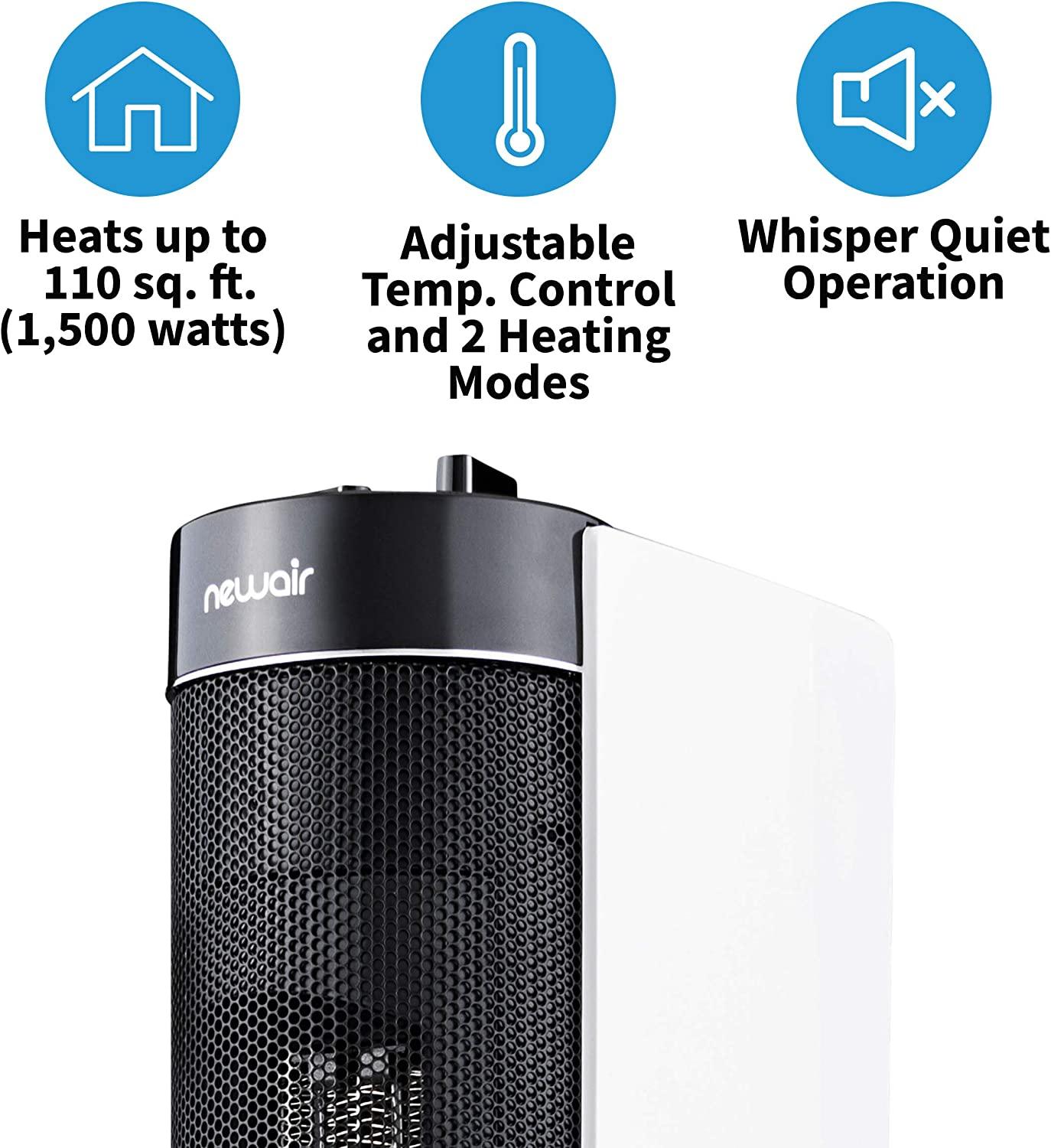 - [Quiet, Fan-Assisted Ceramic Heating] This portable heater combines the efficiency of a ceramic heating element with the power of a tower fan to deliver a steady stream of warm air to your work area. The fan is silent for distraction- heating.