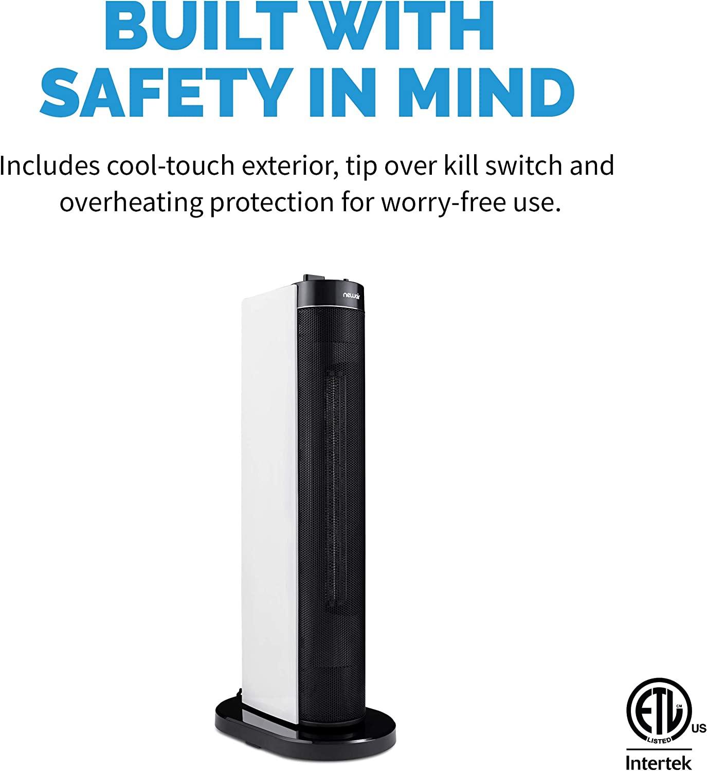 - [Smart Safety Features] This ETL-certified space heater features a 120v plug and an automatic shut-off function that prevents overheating. There’s also an anti-tip switch that detects a fall and shuts the heater down immediately to prevent accidents.