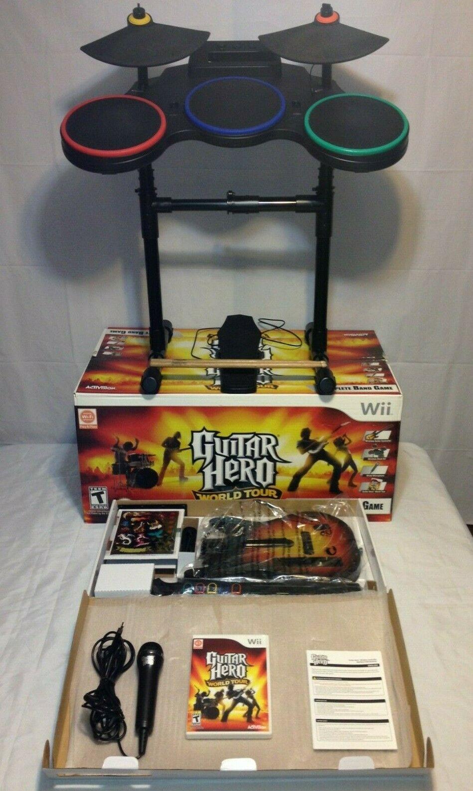 NINTENDO WII Guitar Hero World Tour Complete Band Game Bundle CIB Video Game Wii