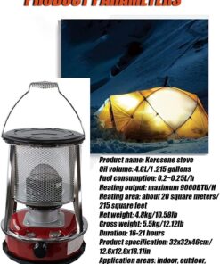 - 【High Calorific Value】The space heaters for indoor use furnace reaches 99.8%, and the heating area is large. 7800~8900 BTU/H (equivalent to 2600 W), the fuel consumption per hour is 0.25L. It can quickly increase the space of about 20/25 square meters.