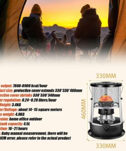 - 【Lightweight】Kerosene heater 4.5L fuel tank capacity can last 16-21h with storage bag and spare accessories. Power/Voltage: about 14~15 square meters.This makes it very flexible and easy to use. There are 7 cotton cores. So you don’t have to worry about running out of wicks.