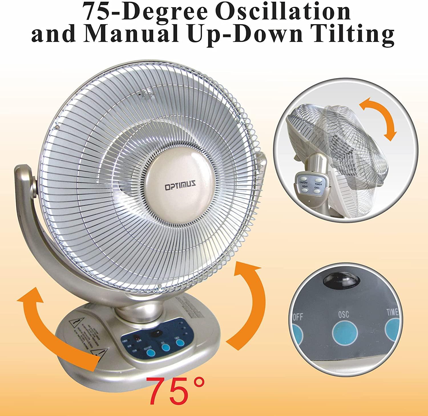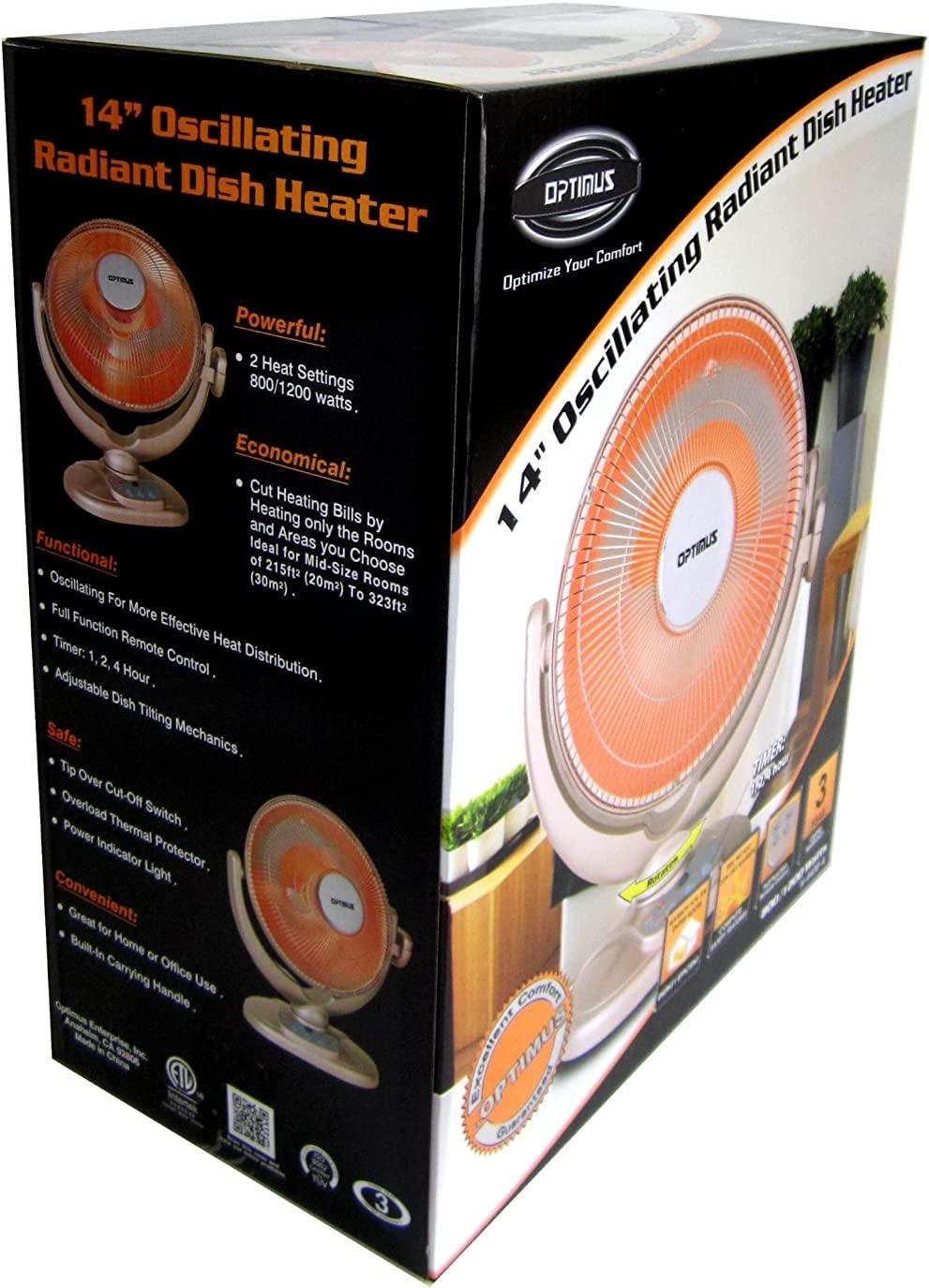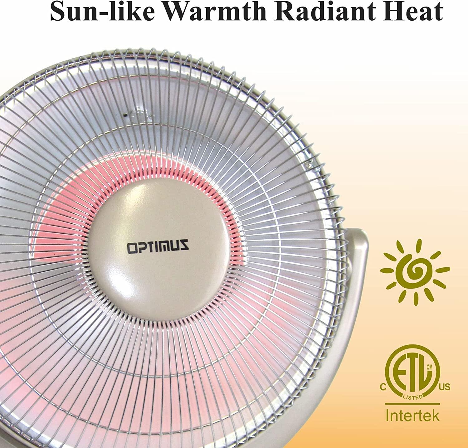 - Portable 14-inch dish heater produces warm, sun-like radiant heat