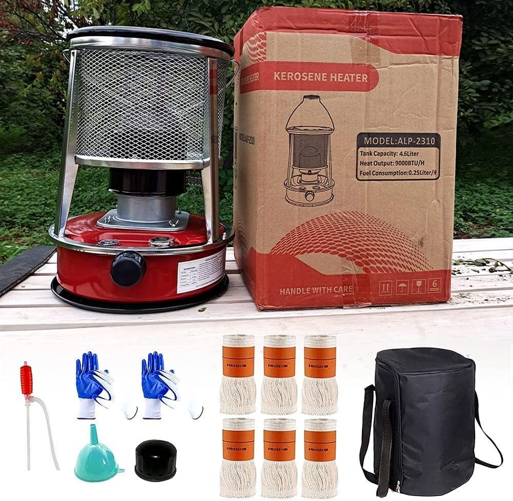 - 【High-efficiency combustion】combustion efficiency of the kerosene heater is 99.8%, hemispherical combustion, large heating area, and 360° surrounding heating. The 4.6-liter large-capacity kerosene stove has a maximum calorific value of 9000 BTU/H and an hourly fuel consumption of 0.25L. It can quickly increase the space of about 20 square meters. Equipped with storage bag and spare accessories, it is easy to carry and can be moved at will.