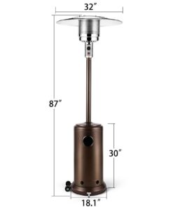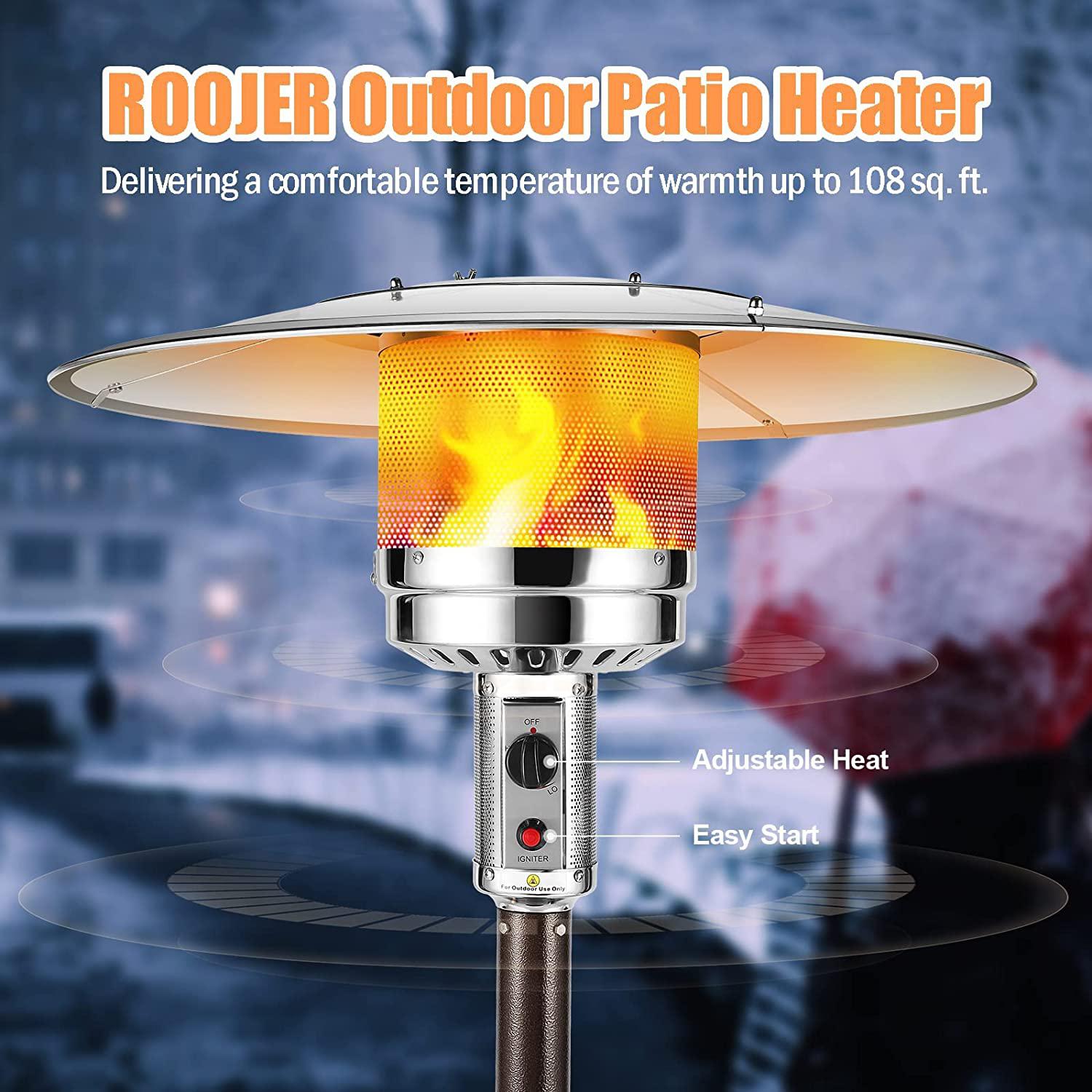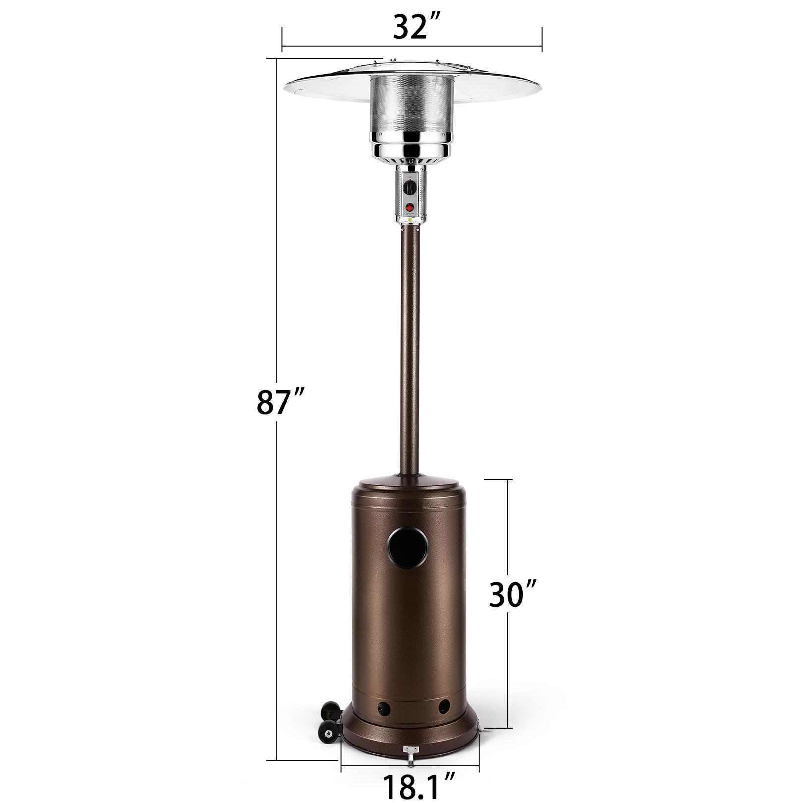 - 【ENERGY SAVING & MONEY SAVING】It’s easy to use and doesn’t burn too much propane, thanks to the unique flame emitter design, the propane patio heater burning propane more sufficiently. With a 20-lb gas cylinder will keep you warm about 10 hours.