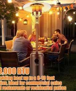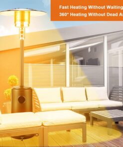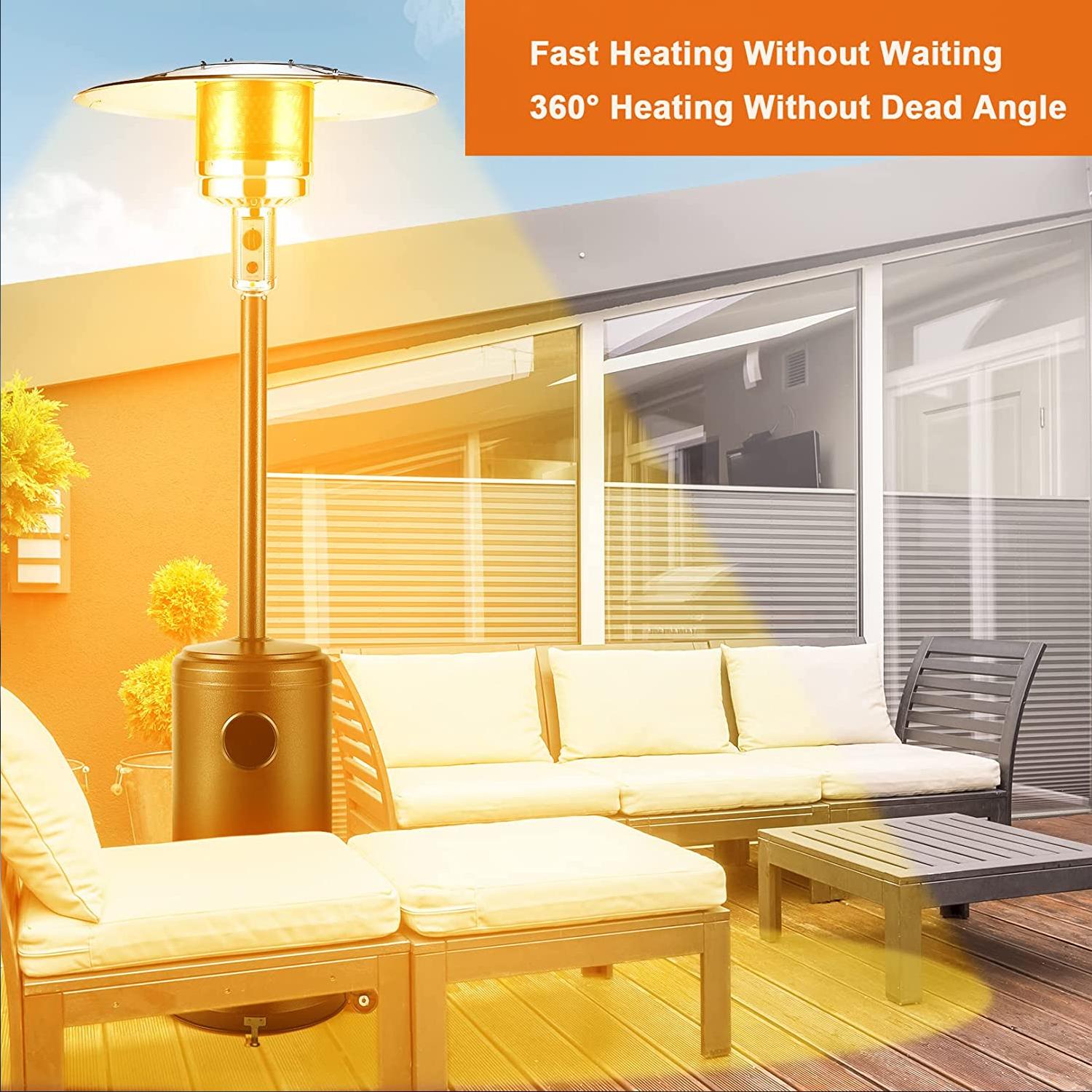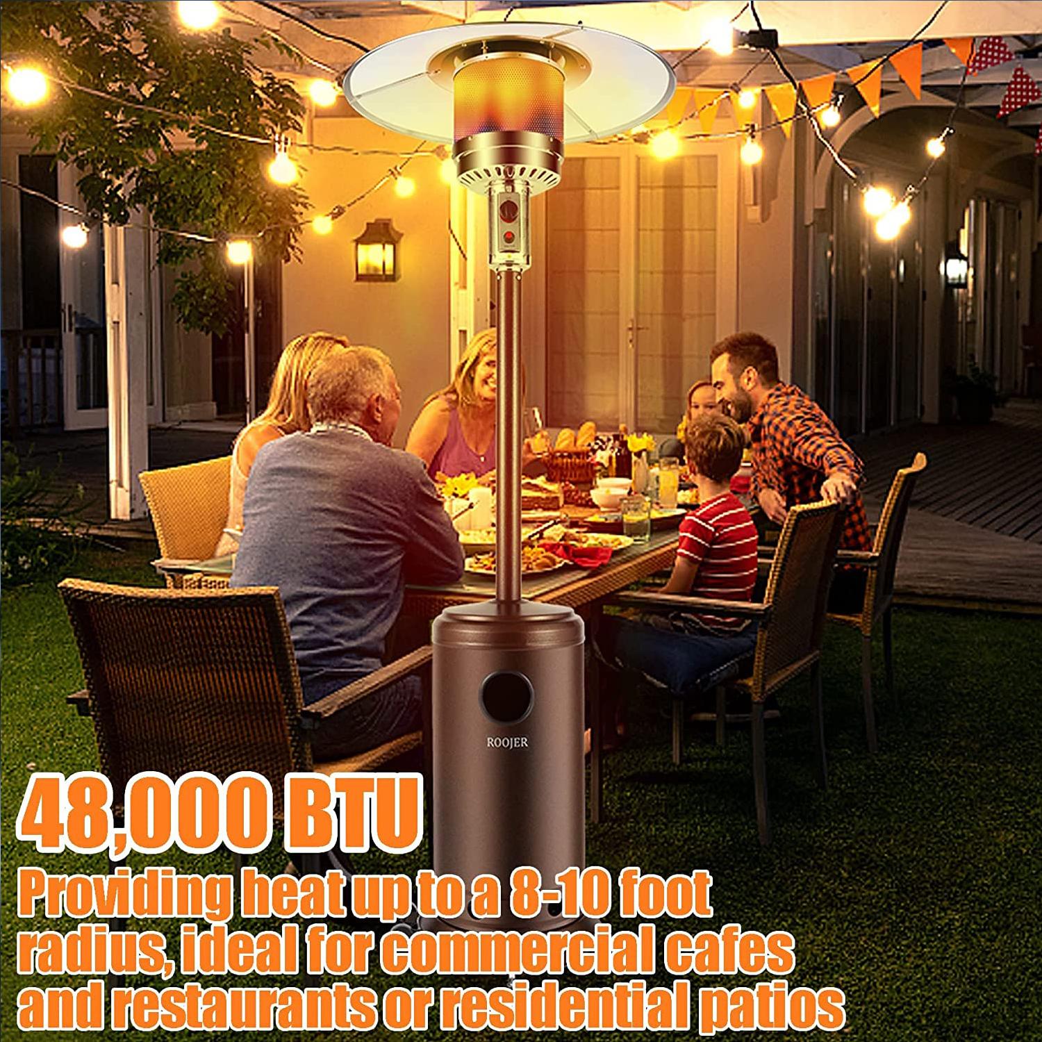 - 【 EFFICIENT HEATING】 The propane heater is equipped with a simple-to-use pulse ignition, putting out 48,000 BTU’s of steady warmth to keep you warm all night long, burners range up to 20 feet. The outdoor heater delivers quiet, soothing and continuous heat, with no smoke or open flames.