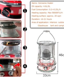 Outdoor Heating Kerosene Stove Portable Camping Oil Heater for Indoor Without Electricity Emergency Heater Max 9000 BTU/H for Heating Cooking Boiling Water (Size : 4.6L/Red)