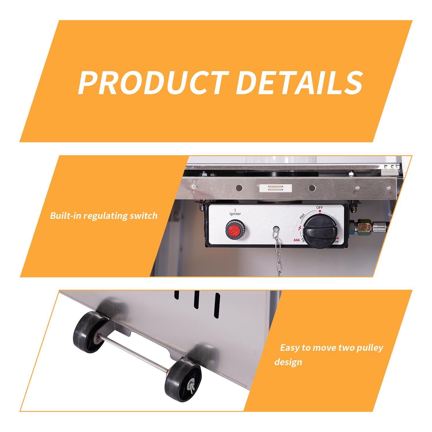 2.Built-in Propane Tank Design:Unique door opening design for built-in tank chamber makes it easier to place a 20-pound propane tank (not included).