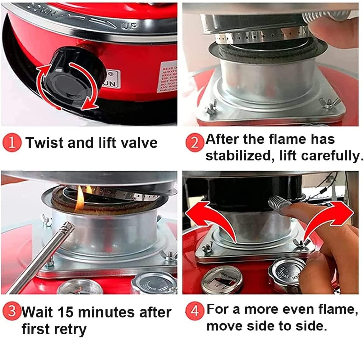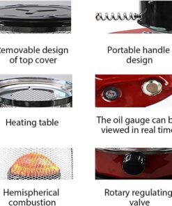 - ●【Adjustment Knob】The oil heater has a rotary valve, which can adjust the fire power according to your needs; no noise, no glare, and easy to use every night. The heating station on top can be used as a work station for food preparation.