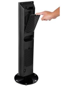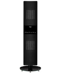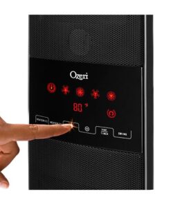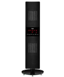 Ozeri is proud to present its OZH1 dual zone oscillating ceramic heater. The Ozeri OZH1 provides rapid heat on a wintry night with a programmable 12-hour timer and thermostat so that you can sleep in comfort. The OZH1 dual zone oscillating ceramic heater features a sleek space-saving design enhances room decor, with a sturdy glass base designed to reduce the occurrence of accidental tip overs. The OZH1 utilizes a touch-button illuminated LED display that boasts a better viewing angle and common LCD displays, and an extended-range remote control unit for maximum convenience. The OZH1 utilizes dual PTC ceramic heating systems to allow for 2 independently controllable heating zones, each with 2 speeds for rapid heat distribution at 800 W (low) or 1500W (high). it also includes overheat protection to prevent irritating dust burning odors, and an intelligent thermostat that adjusts heat output according to the ambient temperature, and automatically turns off when the selected temperature is reached. The OZH1 dual zone oscillating ceramic heater utilizes a new whisper quiet DC motor that generates warming air with the lowest possible noise coefficient, and dismountable dustproof filters for easy cleaning. It measures 33.5 inch in height and includes a Recessed handle for easy transporting. Your satisfaction is guaranteed.