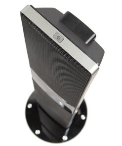 - Ultra thin space-saving design enhances room decor and features a touch button LED display, an extended range remote control unit, and an elegant sturdy glass base that reduces accidental tip-over.