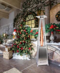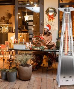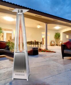 This 87 inch tall outdoor patio heater features a mesmerizing glass flame tube that is guaranteed to liven up any atmosphere. The long-lasting, stainless steel finish is sure to catch the eye of your partygoers.The latest in design and heat, the Quartz Glass Tube Flame Heater brings style to outdoor heating. Its unique, visually mesmerizing flame provides heat in every direction