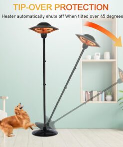 - [Tip-Over Protection]- This outdoor heater has a stable round base to avoid dumping. What’s more, it is equipped with a tip-over protection function. When the heater titles more than 45 degree angle, it will automatically cut off the power. So you do not need to worry about child or pet accidentally hitting it, or strong wind in winter blowing it down and cause safety hazards.