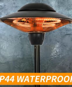 Patio heater is made of high-quality Stainless Steel, frosted surface and has been certified with IP44 water/proof and rain&dust re/sistant that suitable for both indoor and outdoor use. You do not need to move it indoors unless it is very bad weather conditions. With an operating power as high as 1500W, it’s the perfect 360°all round heating solution for areas such as gazebos, patios, outdoor cafes/restaurants, garages, balconies, BBQ, workshops and any other living room.