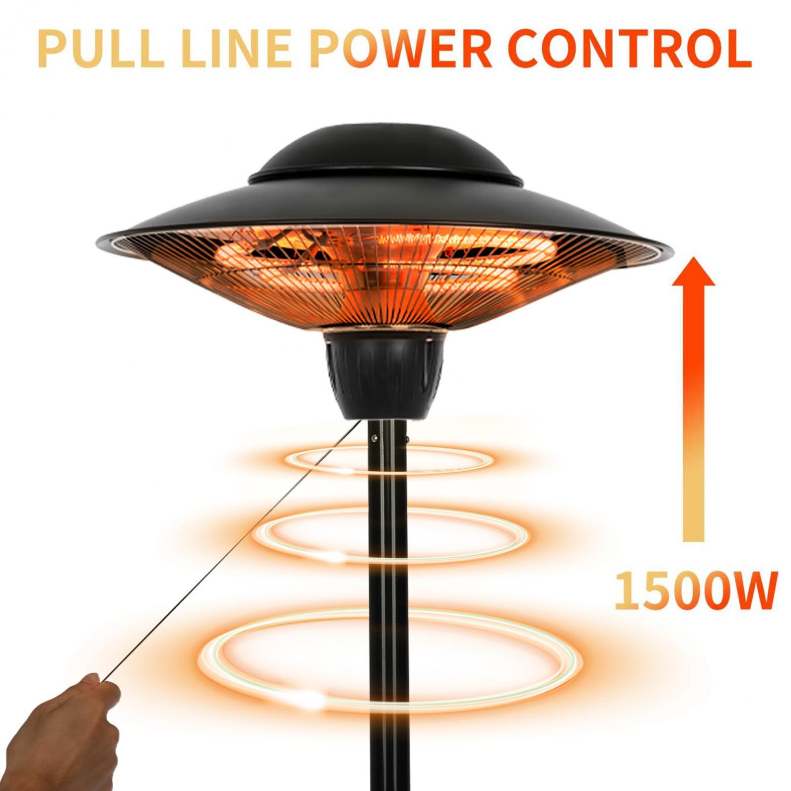 - [Easy to Assemble and Use]- This outdoor heater is very easy to assemble, only partial assembling is needed. Using this electric outdoor heater is also simple and easy. The heater is controlled by a rope/ line to switch on/off and adjust the heat power, which is very convenient to operate.