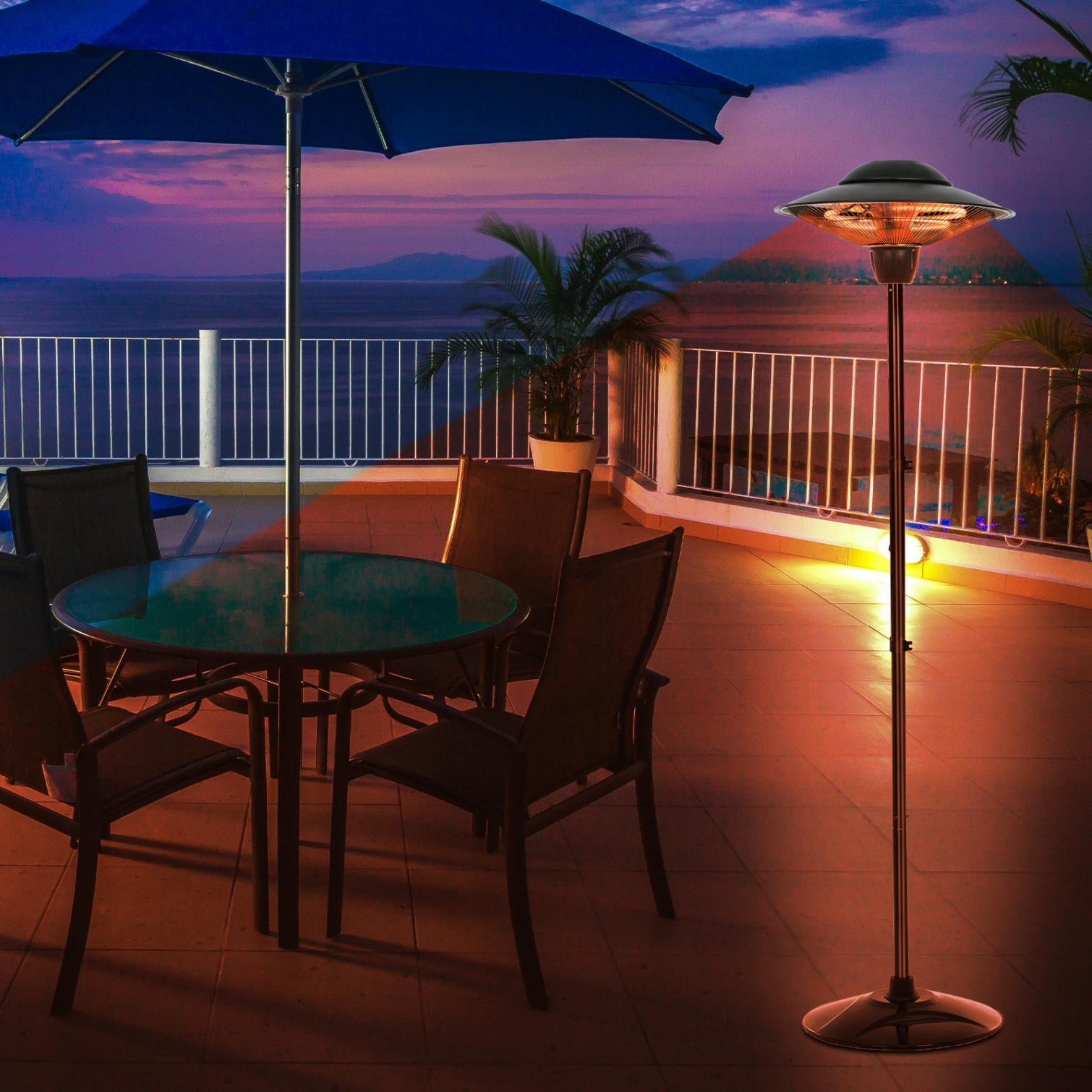 - [High Efficiency& Energy Saving]-This electric patio heater adopts advanced carbon fiber infrared heating technology, which generates large heat instantly without any noise, and can continuously offer sunshine-like warmth. Compared with traditional propane heaters, this heater saves 30%-40% energy and no gas or other flammable fuel needs, totally environmentally-friendly.