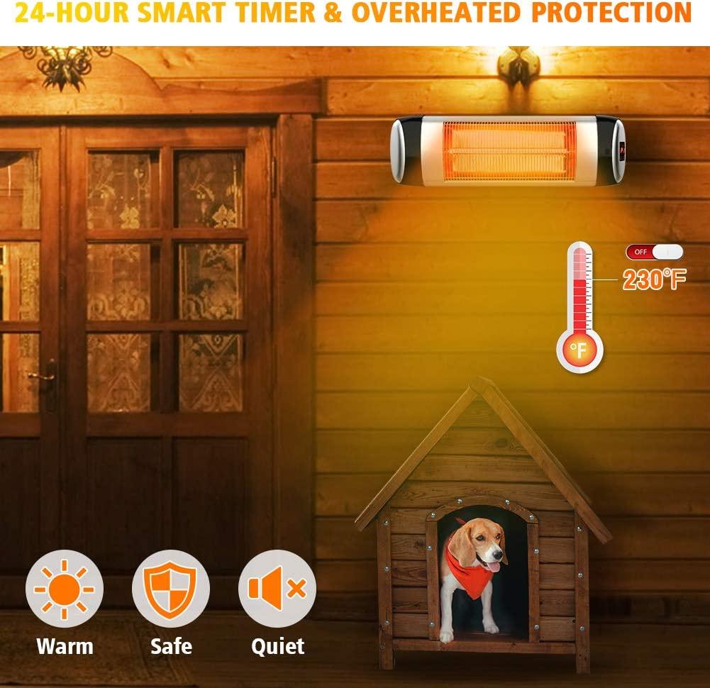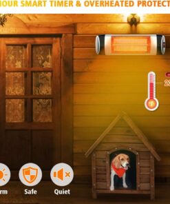- 【Multiple Uses】- 1500W high-level power for this outdoor patio heater, whether indoor or outdoor you can use the for your want. Great for setting on your parch and patio to enjoy your reading; For keeping your new puppy away from cold in the dog kennel; For garage/basement to reduce the chill in the morning; For living room to get warm, Even in the outdoor bars, restaurants, bath room, terrace, chicken coop, smoking area. Don’t you want a PATIOBOSS infrared wall heater ?