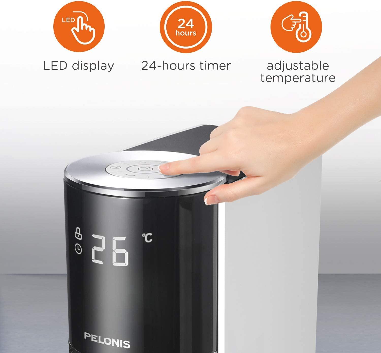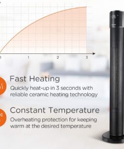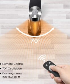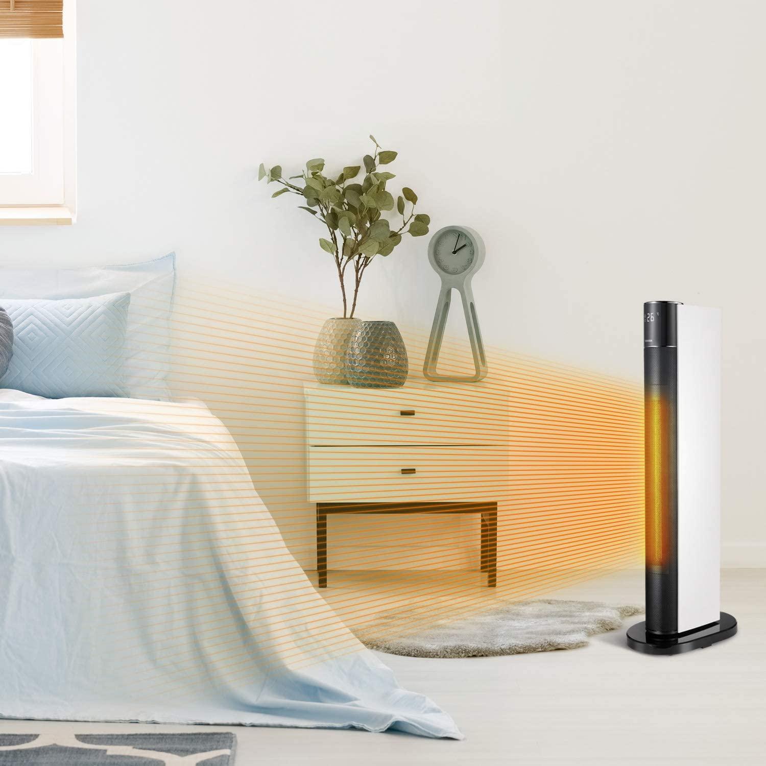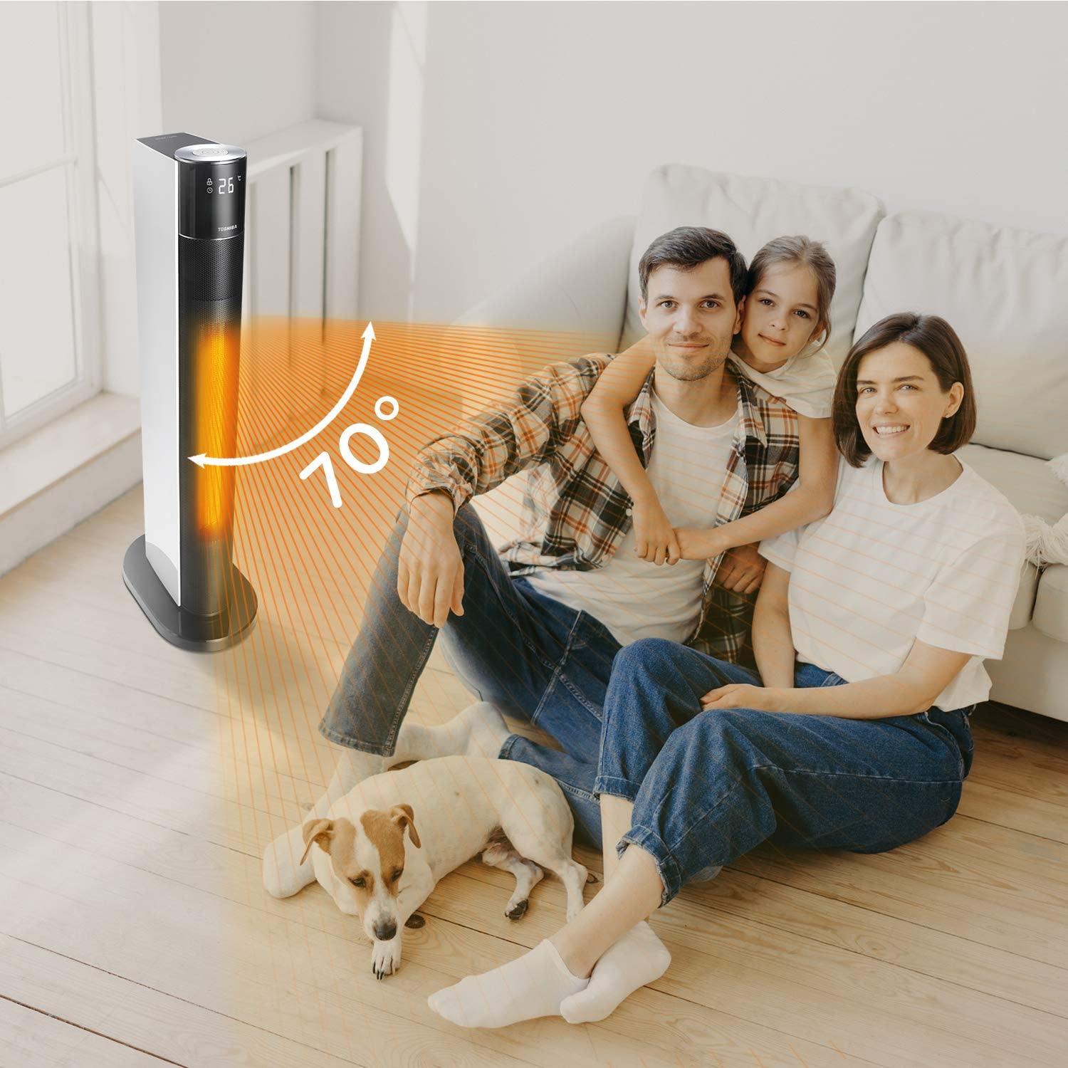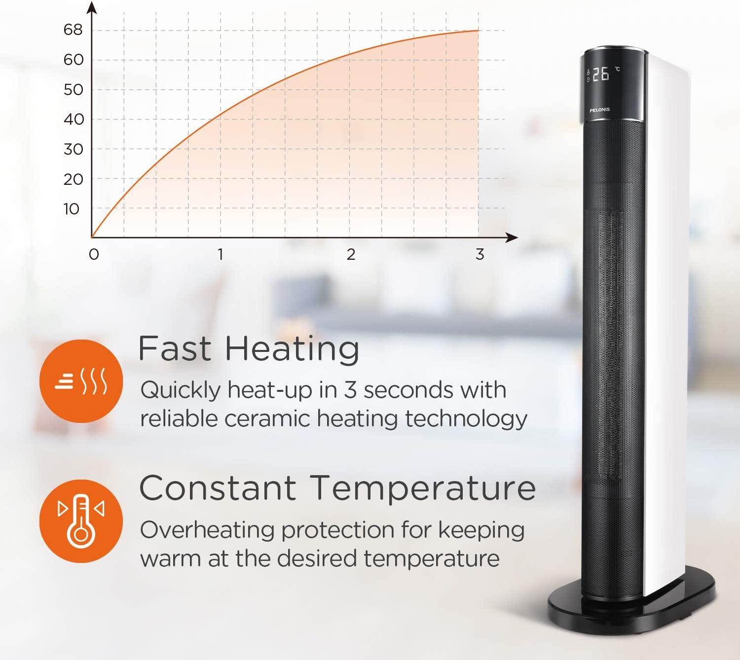 PELONIS Ceramic Space Heater, 1500W Indoor Tower Heater and Fan Setting with 70 Degree Oscillation, Remote Control, Programmable Thermostat & 24H Timer, Tip-Over Switch & Overheating Protection. White