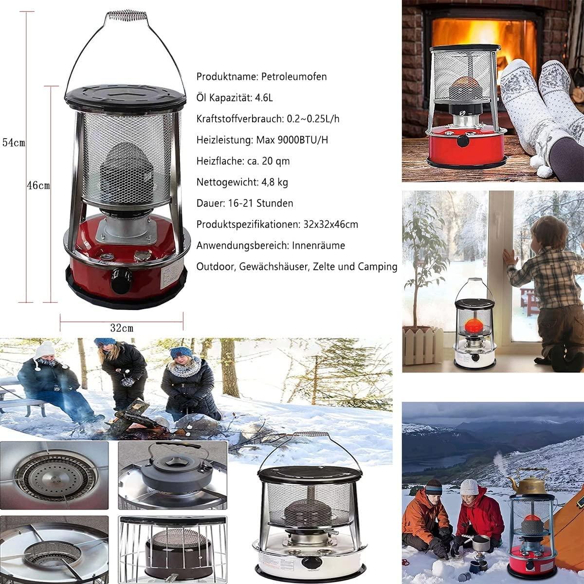 - ☩Low weight: 4.9 kg unladen weight, making it very mobile and flexible to use. Our heating stove is available in 4.6L, equipped with storage bag, spare accessories and portable handle, which is convenient to carry.