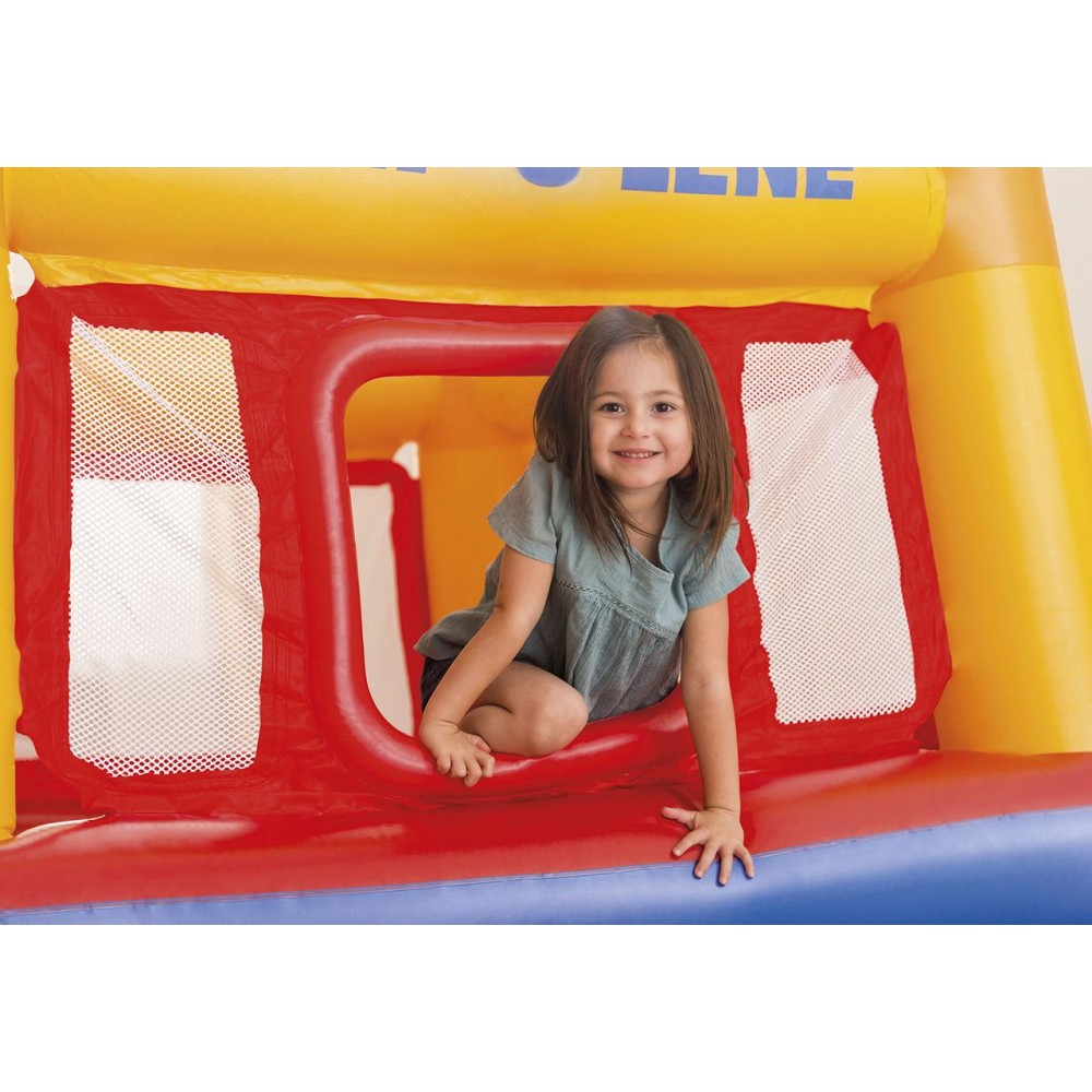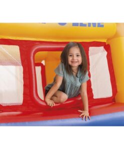 Perfect for jumping and playing, the Intex Playhouse Jump-o-LeneTM is a great play gym for young kids to enjoy for hours on end. This colorful bouncer comes equipped with a crawl-thru door for kids to easily crawl inside. Reinforced net sidewalls provide a safe enclosed play area. An inflatable floor and high sidewalls provide a safe bouncing platform.
