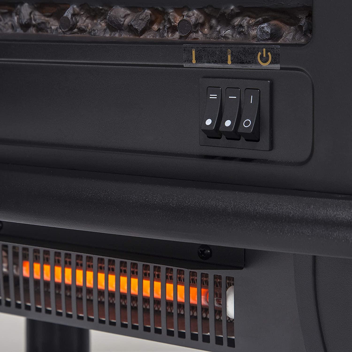 - No venting, no plumbing, hidden control panel easily operates flame, heat and power