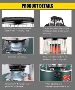 - Safe Energy-saving Design: Portable kerosene stove heater, no electricity needed. has the characteristics of mute, energy saving, smokeless, clean and environmental protection.360-degree protective grill promotes safety.