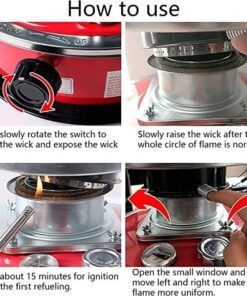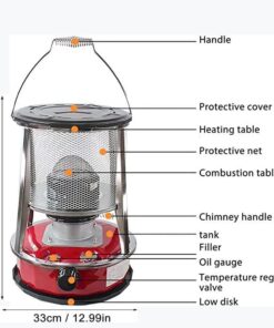 - ❄MULTI-PURPOSE: The fuel gauge can check the fuel condition in real time, and the sealed fuel filler cap is safer. The combustion temperature of the kerosene stove can be adjusted ly, the portable handle is designed for easy ignition, equipped with a safety net, and the top heating table is designed to heat, boil and cook at the same time.