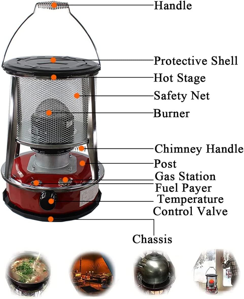 Portable Kerosene Stove Burner, Heating Area: Approx. 20 sqm, Mobile Radiant Heater Emergency Stove, 4.6L Energy-Saving Tent Heater for Cooking Outdoor Camping (Color : Red)