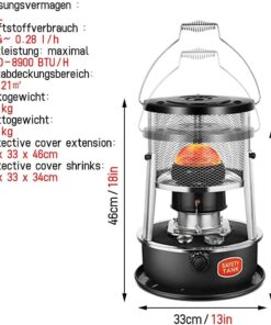 - The portable kerosene stove is only 33x46cm, which can provide a maximum of 8900BTU/H (equivalent to 3000W), 360° all-round rapid heating, and can provide warmth at any time.