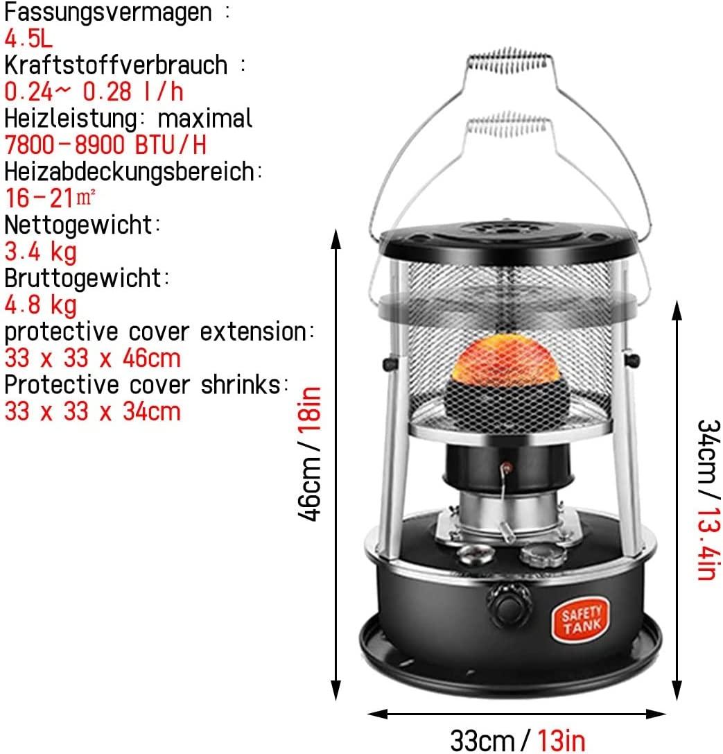- The 4.5L kerosene heater requires no power supply, no assembly, and no need to worry about power outages. It can be used in bathrooms, outdoor camping, barbecues, etc., which is convenient and fast.