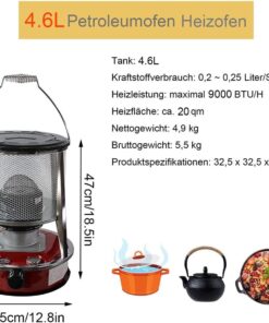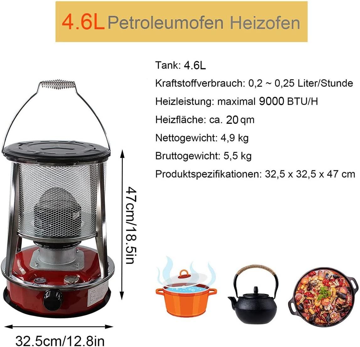 Portable Kerosene Stove Heater for Indoor/Outdoor, Non Electric Compact Convection Kerosene Stove Space Heater 10000 BTU, 4.6L/6L Kerosene Stove Burner for Patio Camping Cooking Ice Fishing