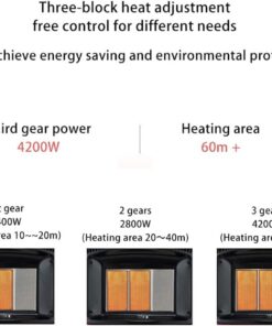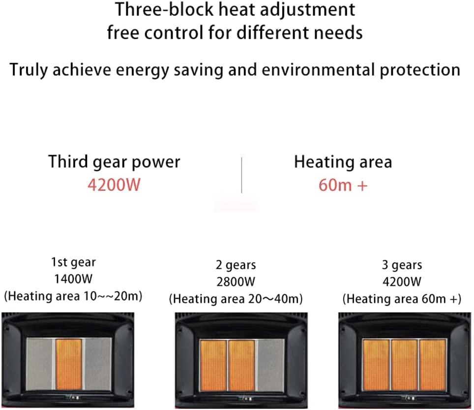 - High efficiency: Choose 1.4 KW, 2.8 KW or 4.2 KW 3 heating gears to distribute the required heat to an area of ​​up to 40 square meters. Depending on the power used, its consumption varies from 110 to 305 g/h