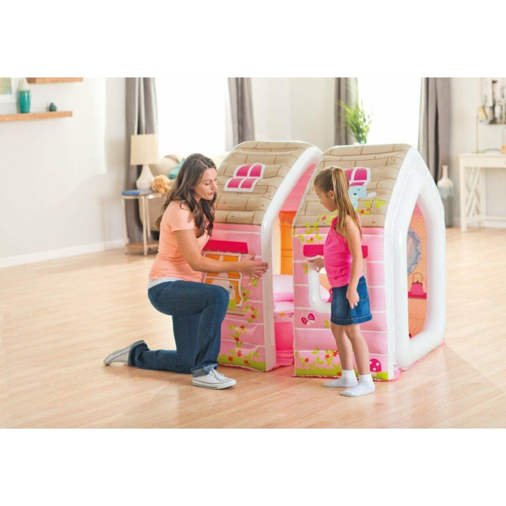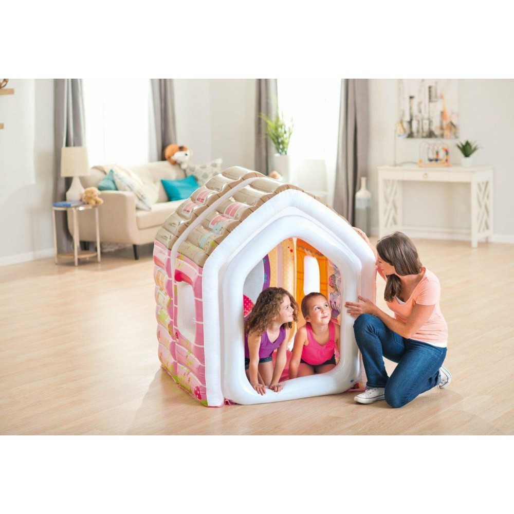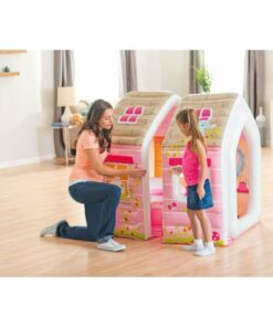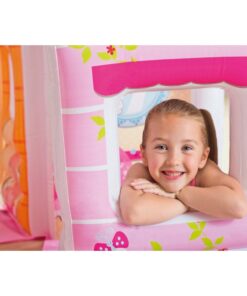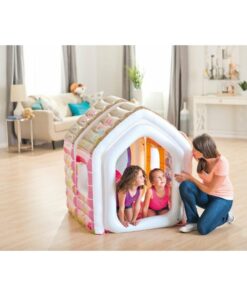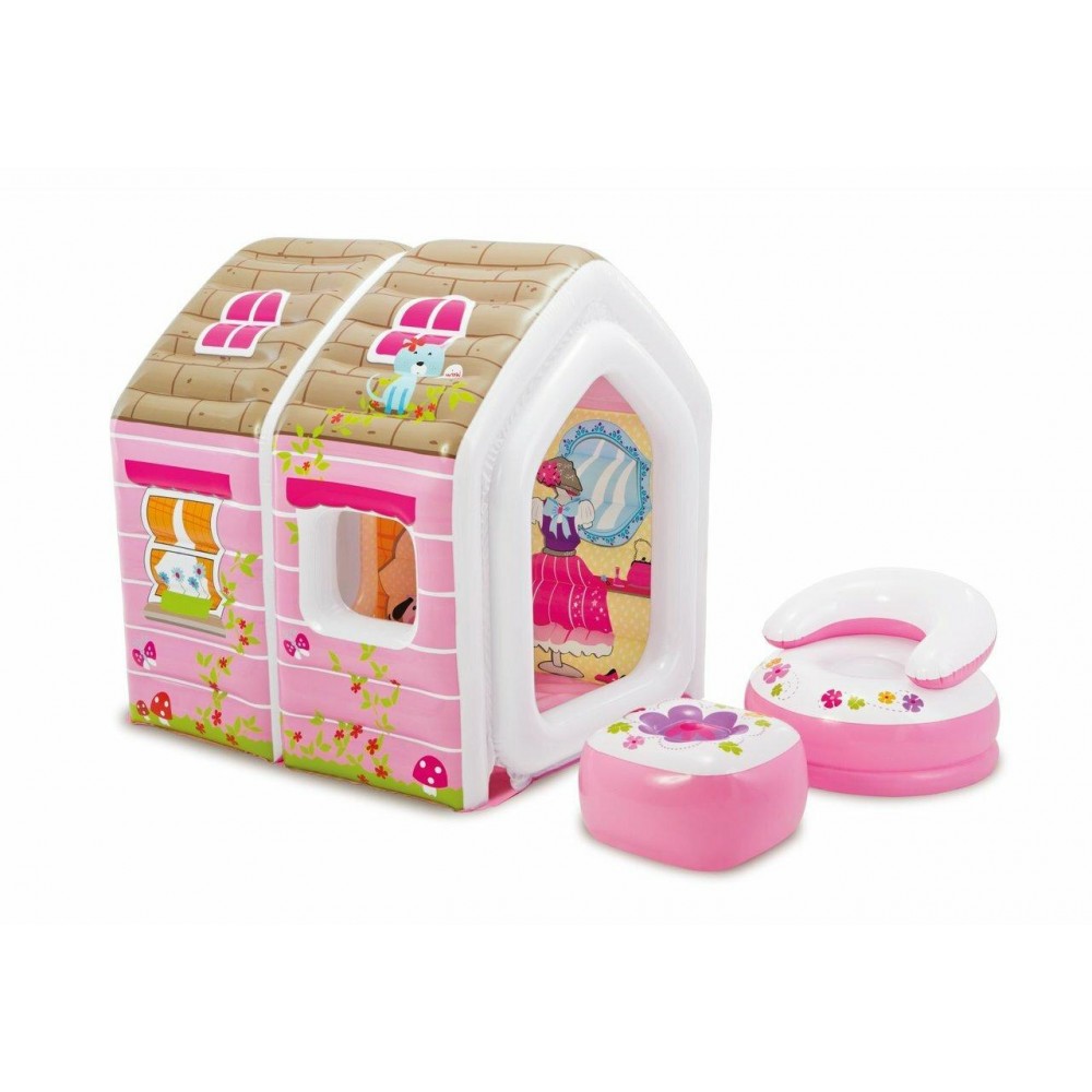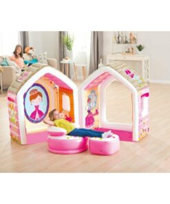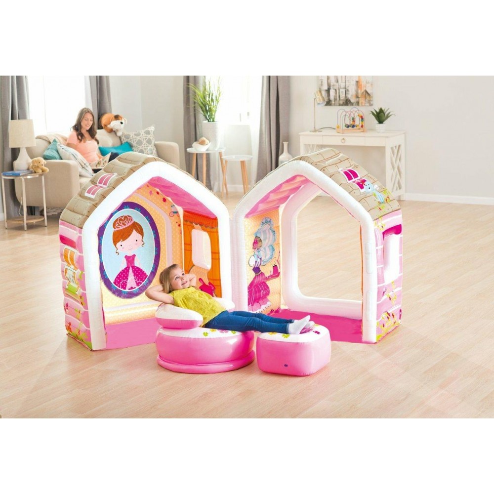 Easy to set up inflatable princess house with armchair and table. Open up the house and invite a friend for a tea party!