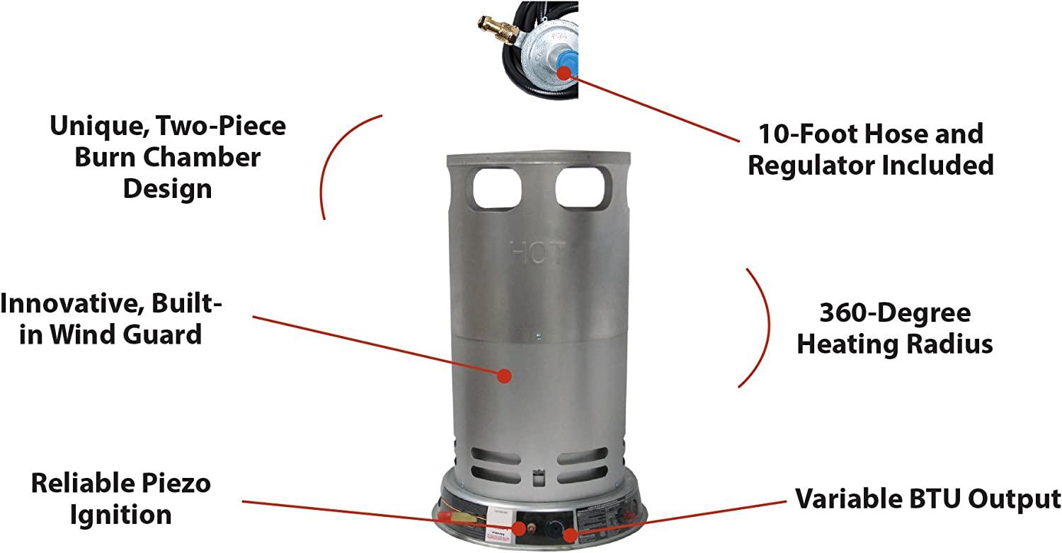 - Versatile great for construction sites, warehouses, loading docks, or any outdoor heating need