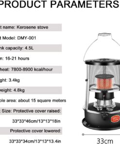 - ?Optional Fuel Tank Capacity?: Our non-electric oil stove mobile heaters come in 4.5 liters and come with storage bags and spare accessories for easy portability, making them very mobile and flexible to use. The heater is made of solid stainless steel, which is rust-proof and extremely durable.