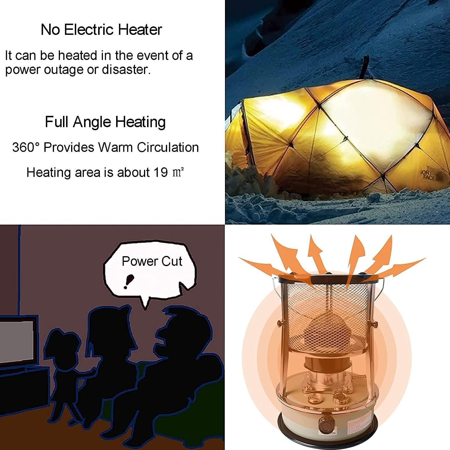 - This kerosene heater is not only suitable for indoor use, but also very practical for outdoor camping, mountaineering, fishing, boiling water, cooking, barbecue, etc. It is an essential item in the event of an emergency such as an earthquake, tsunami or tornado.