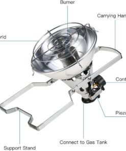 - 1.Collapsible bracket provides a stable support for the heater and gas tank.