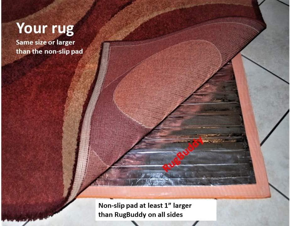 - You MUST use a rug on top & a rug pad below (not included). Use under 3′ x 5′ area rug.