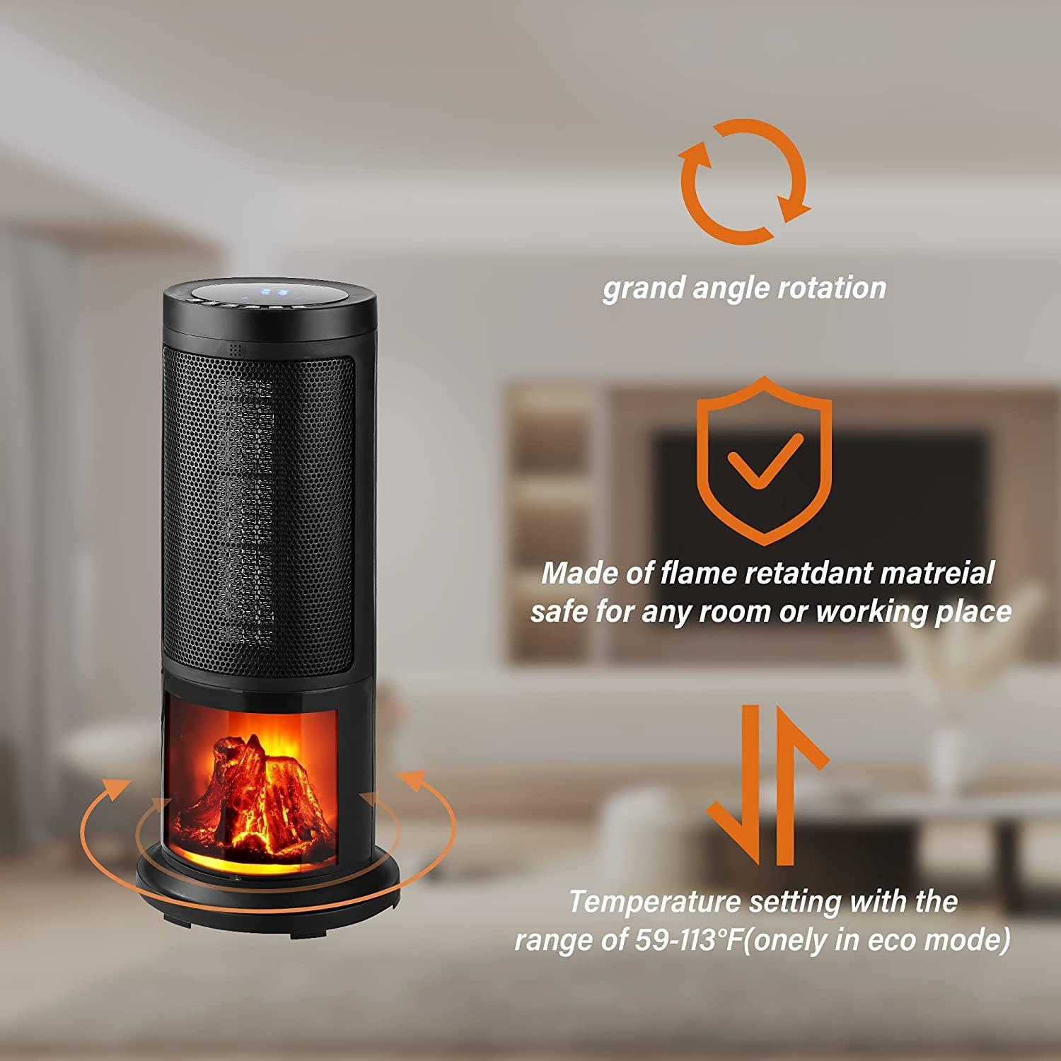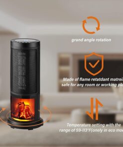 - 【Realistic Flame Design】Flames emerge slowly from the “source” and then get pulled to the top of the heater where they flash in the heat of the top of the heater.Gorgeous realistic dancing flames and burning log design make the effect of true flame of heater, which can embellish your room when enjoying the warming.