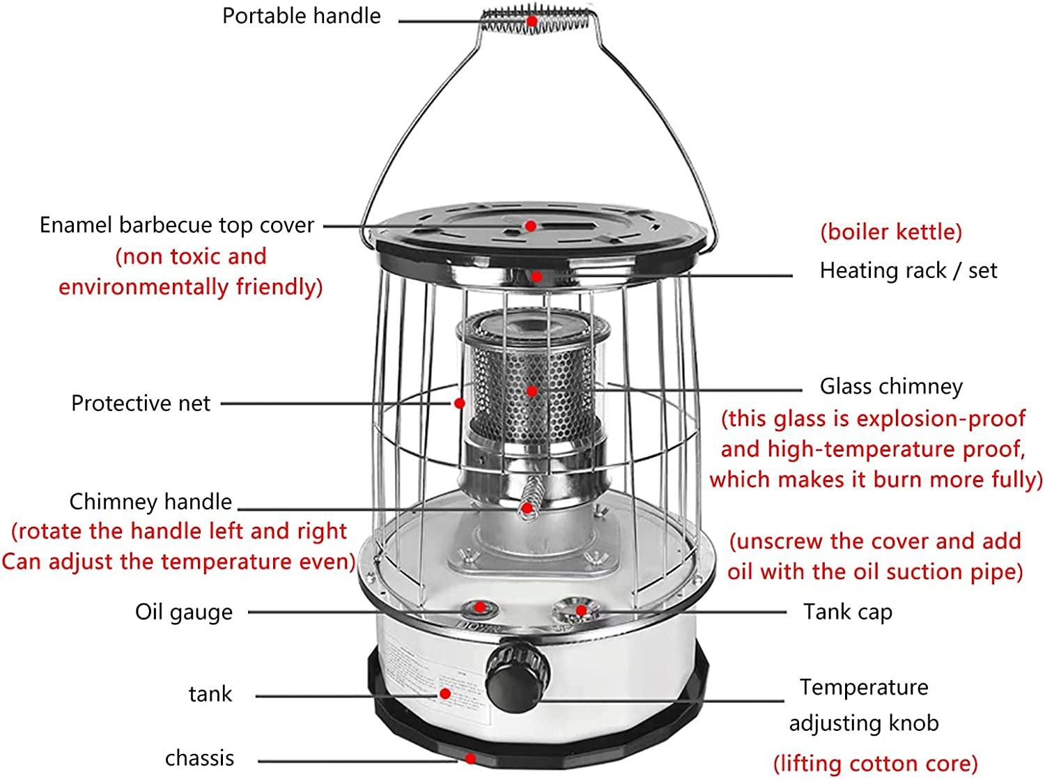 - The burning chimney made of special metal enables the kerosene to be fully burned, and the heating is faster and more efficient.